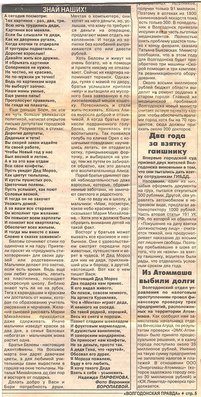 Газета "Волго-Донской край" 20 февраля 2003г.